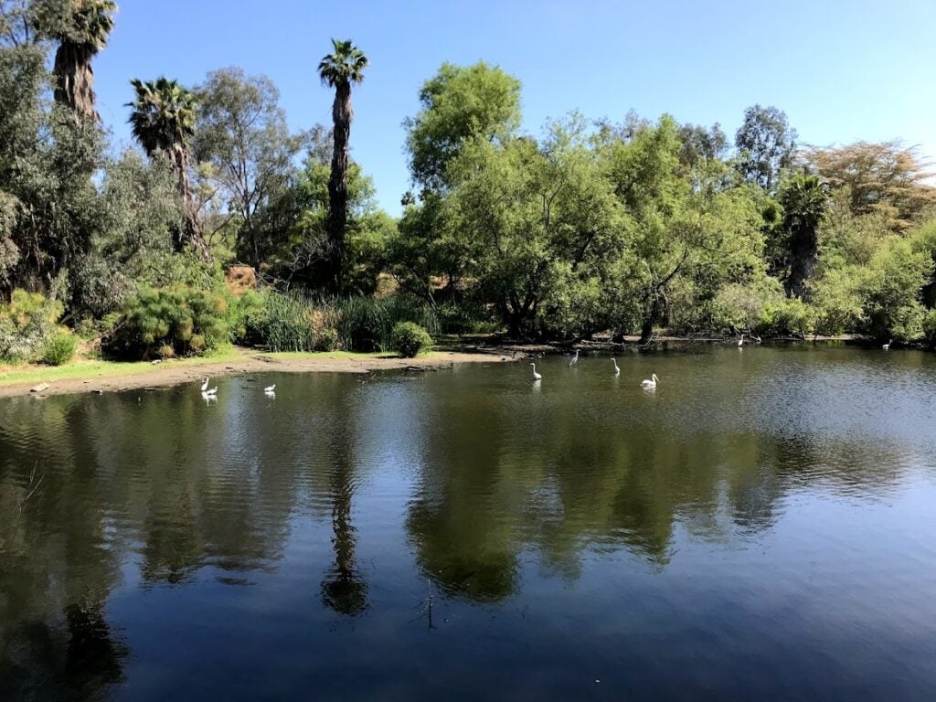 A water retention pond at the Safari Park attracts migratory waterfowl.