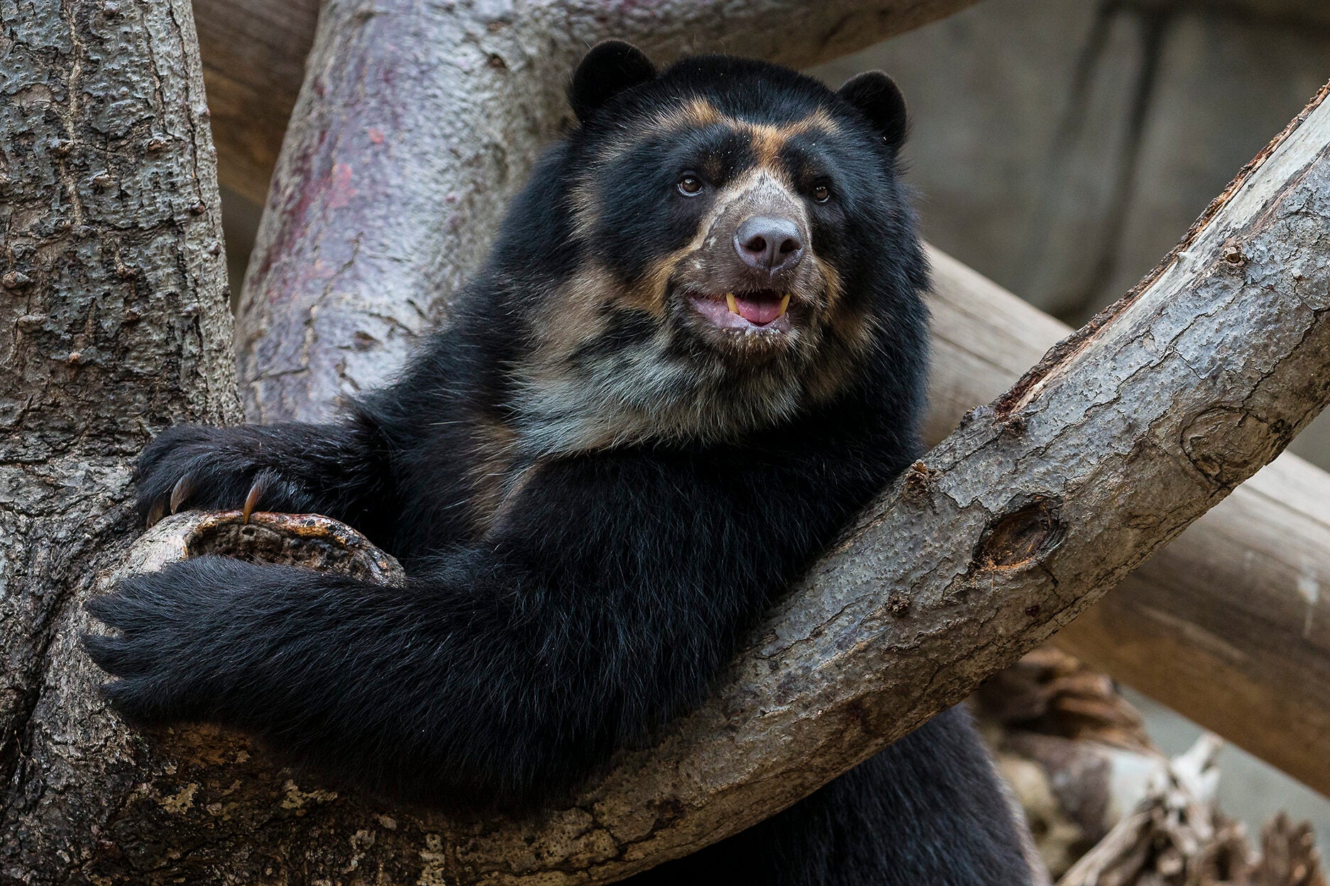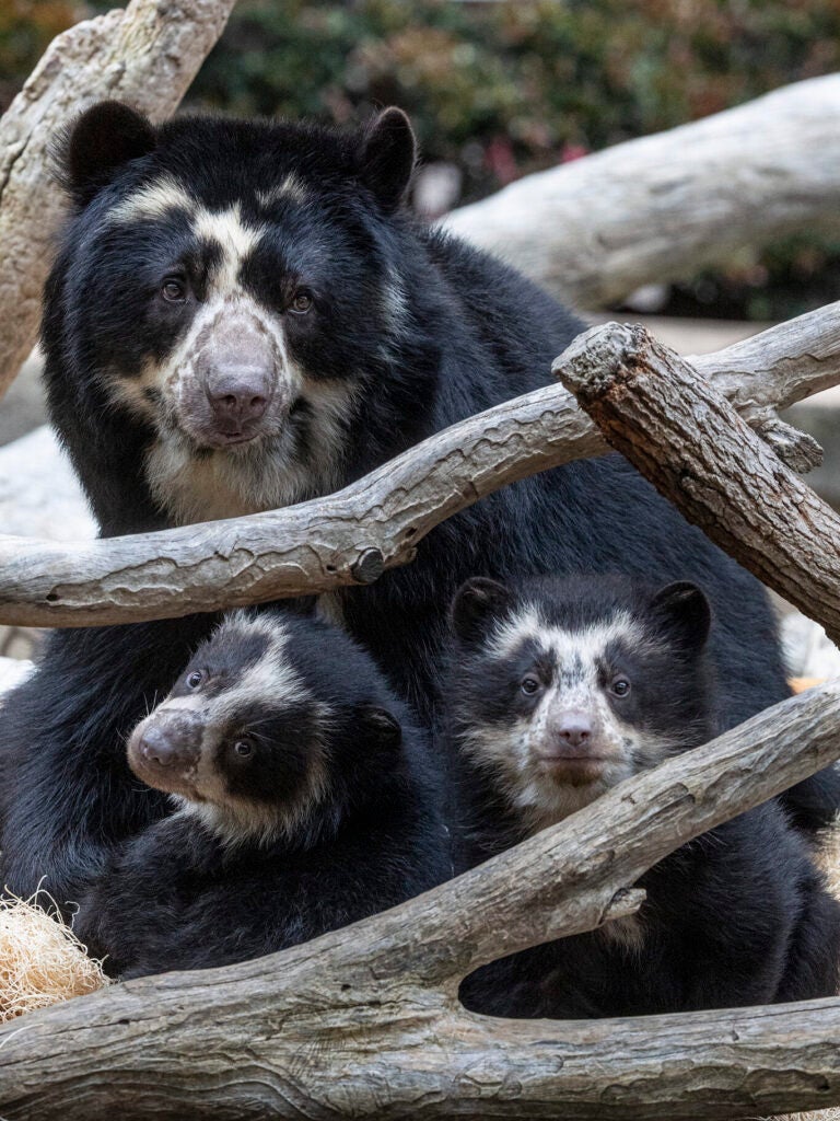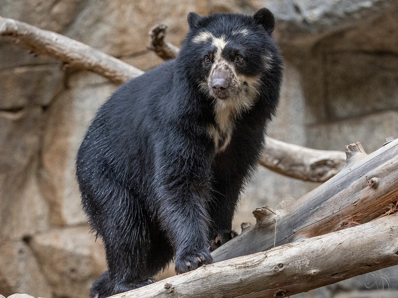 Not only is this an exciting time for wildlife care specialists and San Diego Zoo Wildlife Alliance, but it marks a significant addition for a vulnerable species. The only bear species in South America, Andean bears Tremarctos ornatus can be found along the Andes mountain range. They are also called spectacled bears, for the light-colored fur that typically appears as rings around their eyes, resembling glasses or “spectacles.” They are a true arboreal species, and build elaborate nests and platforms in trees to feed from and sleep in. There are only about 2,000 Andean bears left in their native habitats, which is why our two new additions are so significant.
