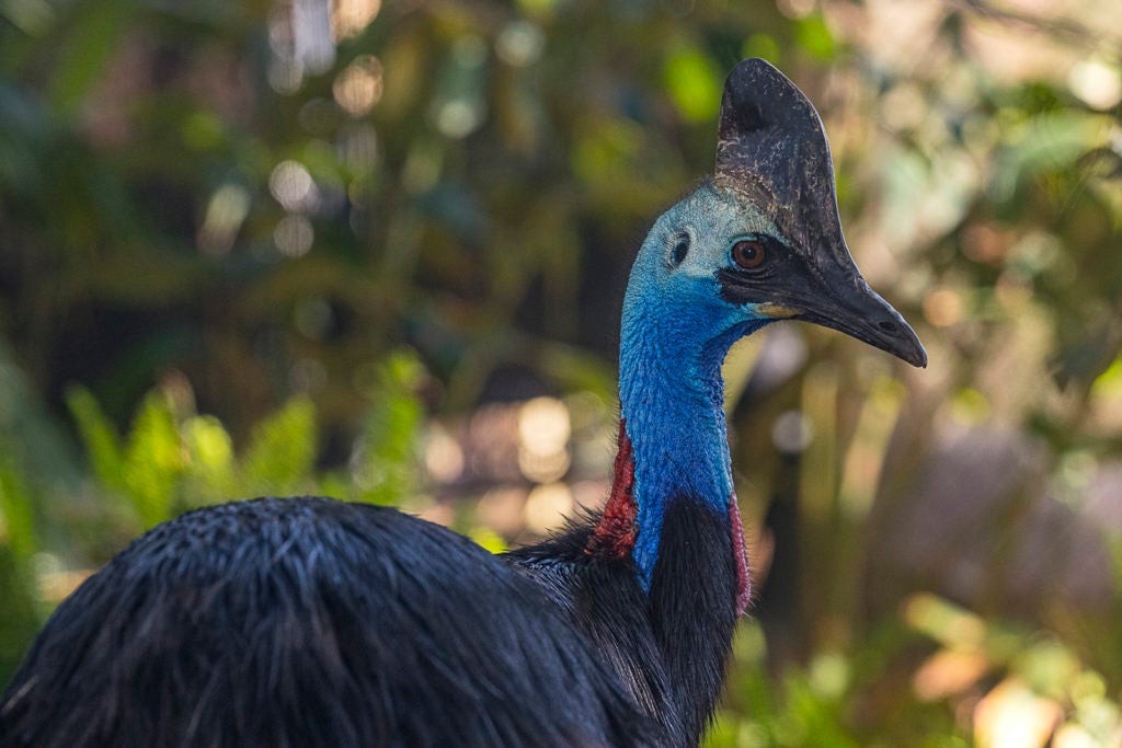 Another extreme example of paternal care is among the colorful, flightless cassowary of New Guinea, northern Australia, and surrounding islands.