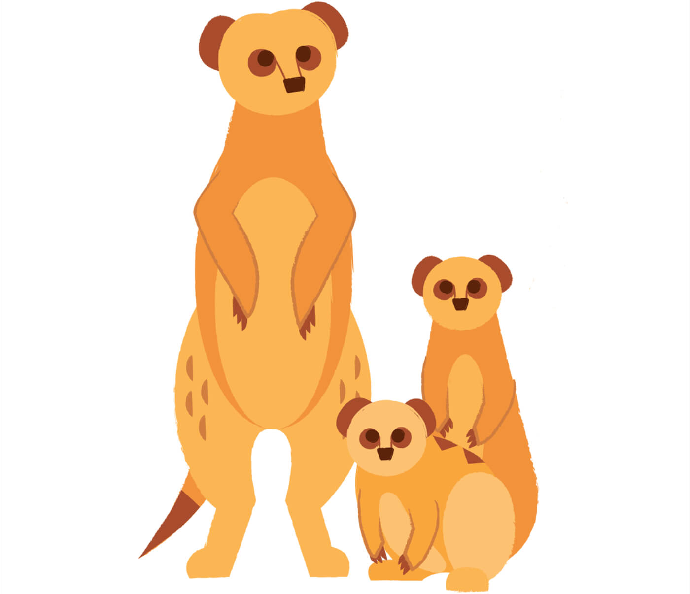 A mob of meerkats can include up to 30 members. When the breeding pair’s pups emerge from the burrow at three to four weeks of age, babysitters look after them while the mother forages.[/caption]