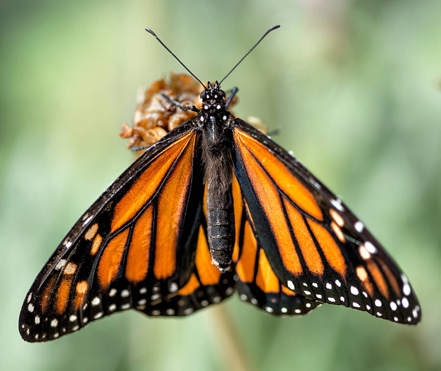 OE infections in winter-breeding monarchs on tropical milkweed can be up to five times higher than in migratory monarchs. In California, the prevalence of OE in sites with resident, non-migratory monarchs can be up to nine times higher. “In general, native plants are always the best choice for local wildlife, and for monarchs, native milkweed is critical,” says Paige Howorth, McKinney Family director of invertebrate care and conservation for San Diego Zoo Wildlife Alliance. “Everyone can help.” Unfortunately, tropical milkweed is the most available type in nurseries and garden centers. This results in many well-intentioned monarch enthusiasts planting milkweed that harms, not helps, the species.