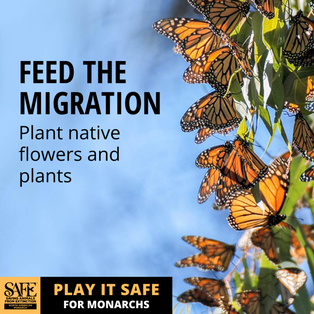 Individuals, families, and communities can help minimize known risks to monarchs through simple, enjoyable actions. To Play it SAFE for Monarchs, you take part in community science projects and create monarch habitat while avoiding activities that can put monarchs in harm's way. We will be making and sharing plans all calendar year so you can help prepare for the fall migration and the spring migration/breeding season that follows.