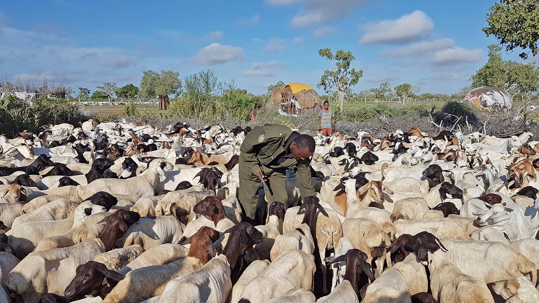 At the request of the Ishaqbini community, nearly 60,000 head of livestock were vaccinated in 2020. Here, Dr. Chege vaccinates goats for the two most common diseases that affect goats in the Ishaqbini area: Peste des Petits Ruminants (PPR) and contagious caprine pleuropneumonia (CCPP). (Photo by: Omar Hussein)