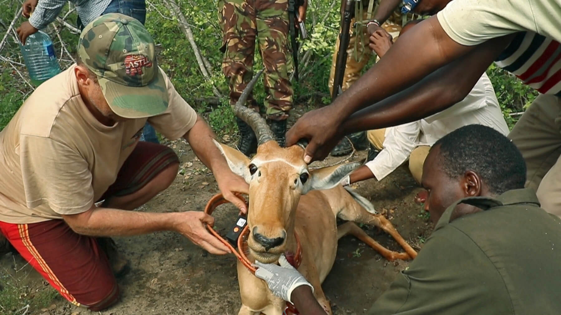 Dr. Chege worked with the KWS team and NRT to collar five hirola that were released from the sanctuary. Conservation scientists are monitoring their movements. (Photo by: Northern Rangelands Trust)