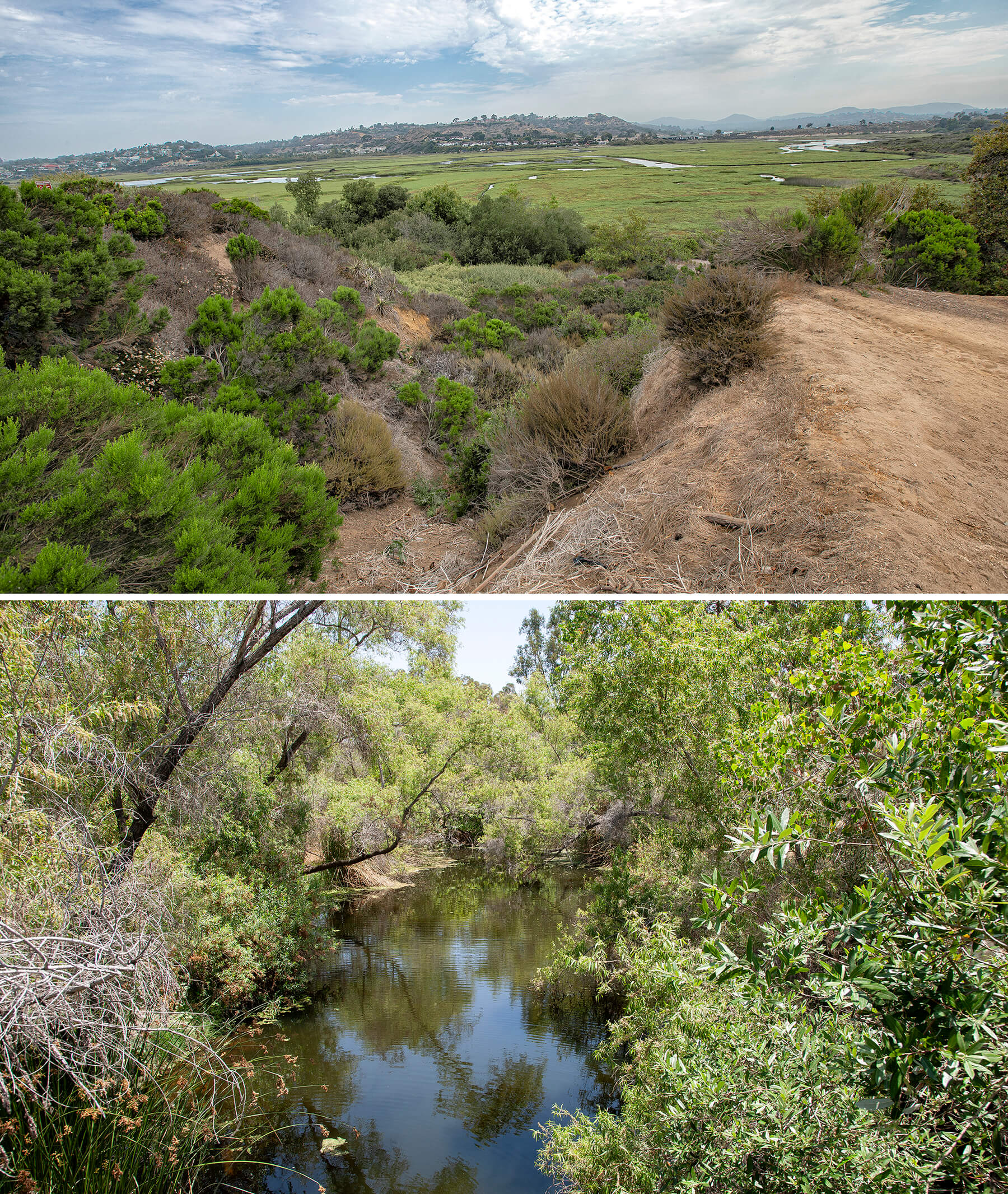What kinds of wildlife will you discover on a visit to San Elijo Lagoon (top) or the San Diego River (bottom)? (Photos by: (Top) Ken Bohn, SDZWA; (Bottom) Tammy Spratt, SDZWA)