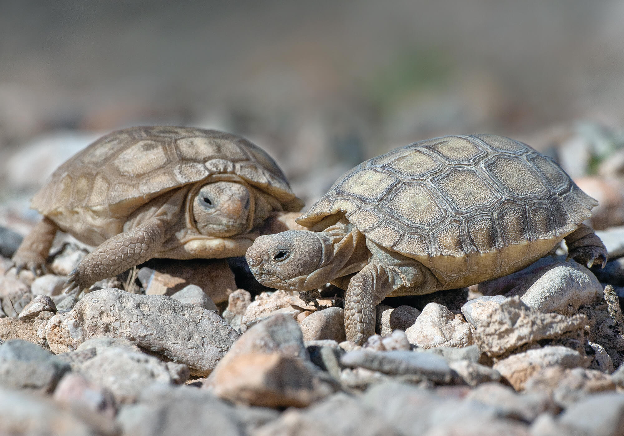 The Mojave desert tortoise Gopherus agassizii is one of the most beloved denizens of the western deserts of the US. Yet, despite the vastness of the American desert, the situation for the tortoise is becoming increasingly desperate: each passing year there are fewer and fewer of them to be found. It seems to be a case of “death by a thousand paper cuts,” with numerous human actions eroding away at tortoise habitat: roads, solar developments, and an increase of “subsidized” predators. Subsidized predators are predator species that thrive in urbanized or human-associated habitats thanks to their ability to take advantage of resources that are associated with humans. In the deserts of the southwestern US, ravens are considered “subsidized predators” and are much more numerous today than they were historically, which is a big problem for desert tortoises.