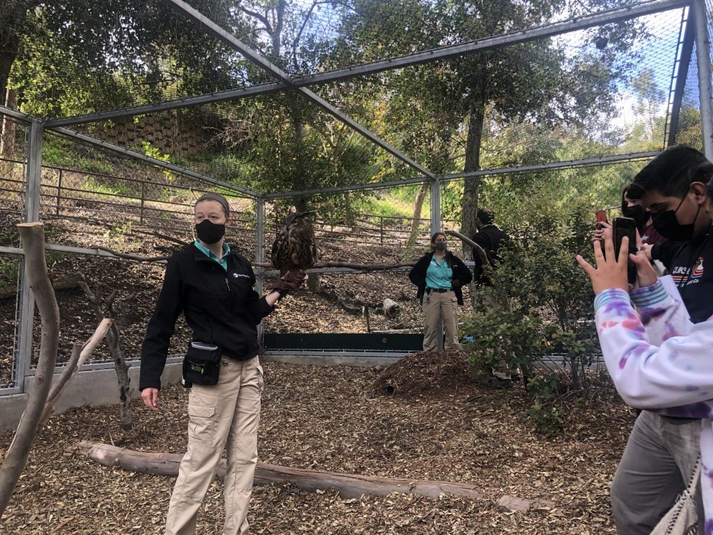 Did you know there is an owl that isn’t nocturnal and lives underground rather than in a tree? Enter the burrowing owl. This week the interns met the observant Buttonwillow, a burrowing owl. They then had the opportunity to meet Senior Research Coordinator Susanne Marczak. Ms. Marczak monitors and helps with the conservation of burrowing owl populations all over San Diego County. Some of her tasks include banding the owls and building artificial nests for them. Ms. Marczak’s job keeps her busy but she loves it nonetheless.