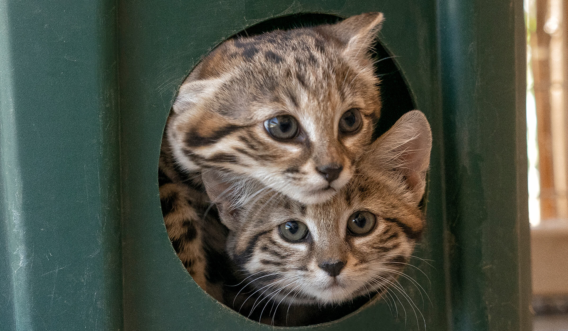 On April 28, 2020, the staff of our Carnivore Breeding Center near the Safari Park watched in wonder as Arwen, a black-footed cat, gave birth. “She started showing signs of labor around noon,” said Dion Rice, senior wildlife care specialist. “The first kitten, a male, was born about an hour after that—and after another hour, Arwen delivered a little female.” Cameras in the den and the yard give the staff a chance to marvel at Arwen’s mothering skills. [caption id="attachment_136780" align="aligncenter" width="1400"]