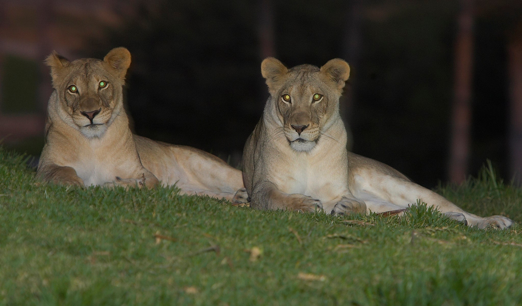 Have you ever wondered why a cat’s eyes appear to glow in the dark? Lions, leopards, jaguars, mountain lions, and even house cats have “night vision” thanks to a special reflective layer in their eyes. Called the tapetum lucidum, this mirror-like structure reflects any available light back into their retinas, allowing them to see in the shadows and causing their eyes to shine. For mountain lions, most of their hunting is done under the cover of darkness, yet their proximity to people puts them at risk. Together with our partners, we’re finding innovative solutions to protect these big cats from modern threats through our Southwest Conservation Hub. By testing small noise- and light-making devices to deter mountain lions, we’re identifying tools for keeping a healthy distance between these predators and people, livestock, and pets.