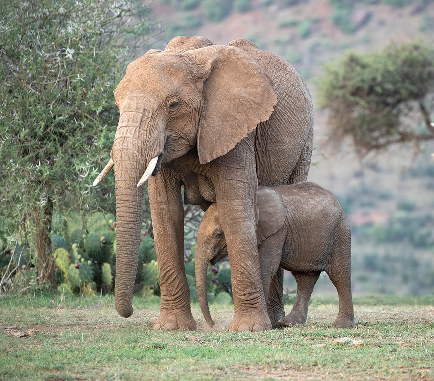 The calf continues to learn important survival skills as it grows into adolescence, watching how its mother and the other members of its natal herd navigate the savanna and utilize resources. “These are dynamic landscapes, with sources of food and water changing seasonally. Calves need to learn how to use landscapes in a way that meets their needs, and knowing where to go is a multi-year learning process,” says Shifra Goldenberg, Ph.D., a San Diego Zoo Wildlife Alliance scientist who has been studying elephant behavior for ten years. Shifra explains that the early years are a key developmental period for calves, as this is when they also learn how to establish and build the social relationships that they will rely on for many years. “This is an extended learning period where they can safely learn how to be social, learn about their environment, and learn from mistakes, all while being surrounded by the protection of their mother and herd.”