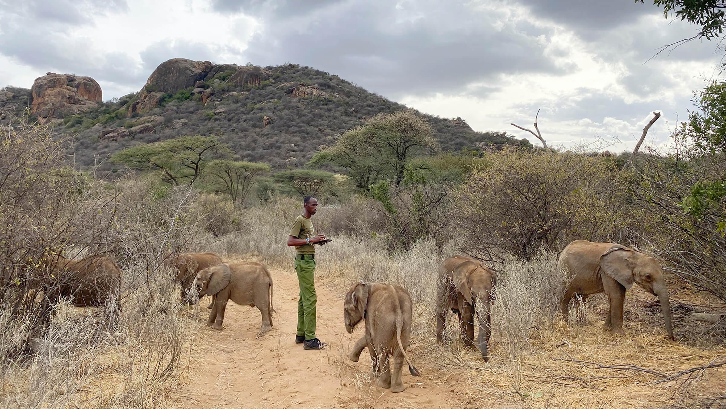 Members of the research team monitor the calves’ behavior prior to and after translocation, recording how the elephants interact with their environment, with each other, and with humans. Behavior patterns may help managers at Reteti make decisions related to raising the calves, reintroducing them, and monitoring their progress post-translocation.